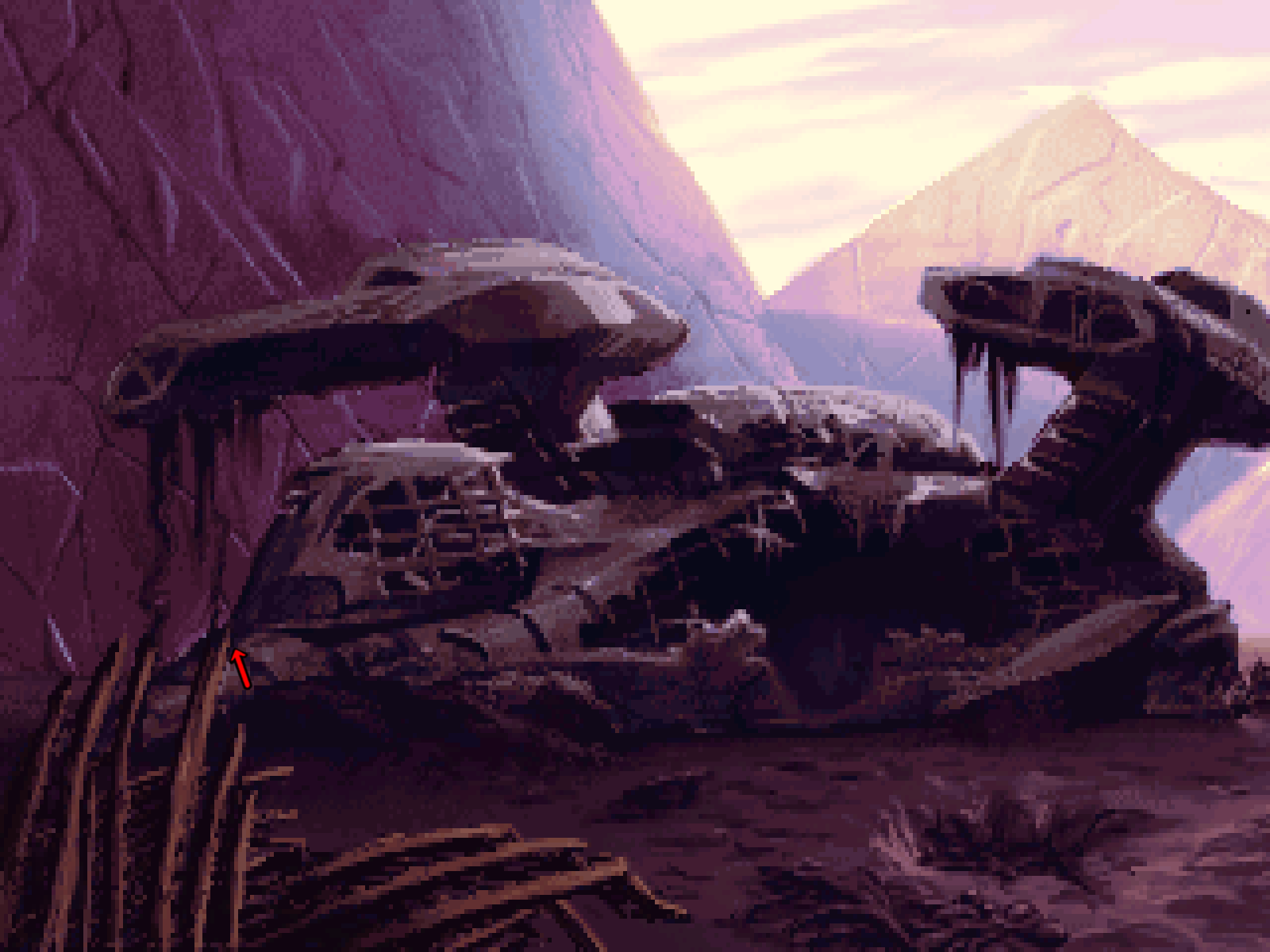 This scene from The Dig shows two equal and opposite light sources (in a nicely complementary palette) with rim lighting helping to show the directions each light comes from clearly. This makes for a very moody, atmospheric scene that's clearly divided into two parts. The strength of yellow features among the purple areas also really helps those particular forms to be very easy to understand, visually.