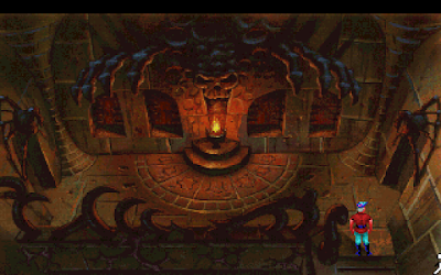 Rim lights are also useful in the case of a single strong light source. In this scene from King's Quest 5 the primary light source is the open doorway that's letting in the glow of the desert sun. The foreground objects glow with a vivid yellow on their edges, which really helps to highlight the strength of this light source, and relegate the rest of the lights that illuminate them to bounce lights from this source. Using rim lights in forms with quite close values and hues like this really helps to define the forms and masses well - notice how well the column and assorted other objects read, despite being similar in colour to the floor and walls behind them. This division of a light just visible on the rim really does a great job of separating them out and making them clear and readable.