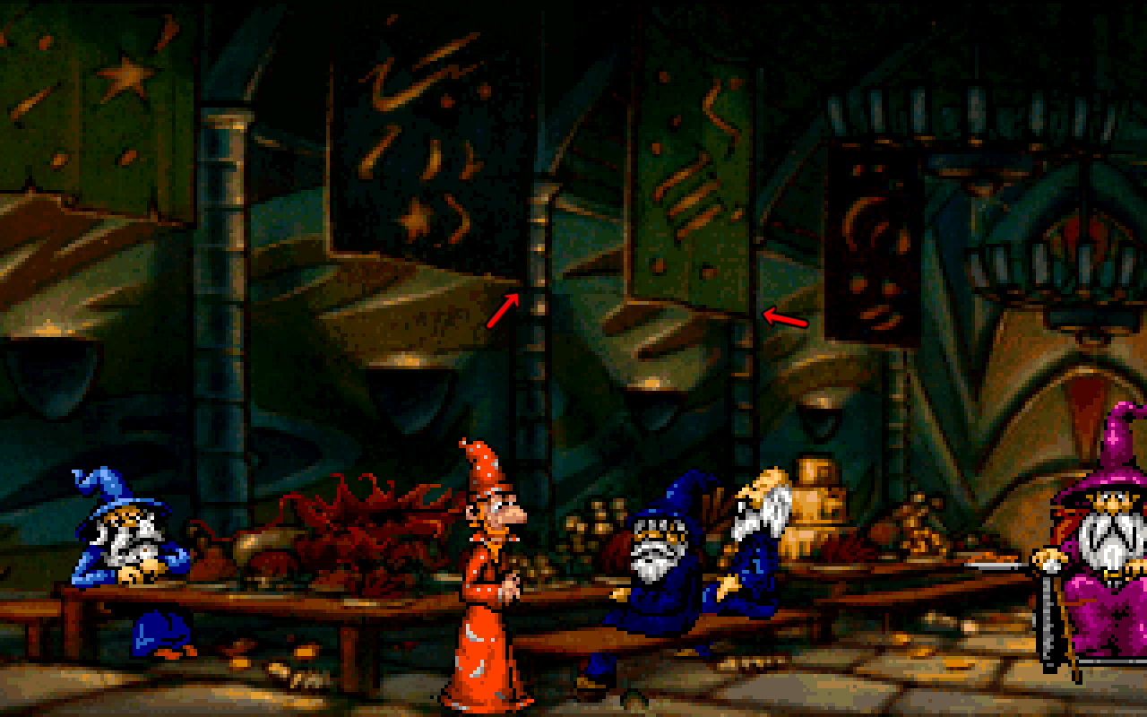 This scene from Simon the Sorcerer 2 shows a great use of rim lights to distinguish the foreground pipes from the dark scene behind them. Because the bounce lights here are also used for rim lighting, rather than diffused ambient lighting, it's also a way to add colour to what would otherwise be pure black objects. Notice here how the joins in the pipes also have rimlights that run along their circumference, as well as the edge, helping to show a change of plane very clearly, despite the fact that light probably wouldn't hit this area. It's an interesting example of ignoring realistic lighting in favour of visual clarity.